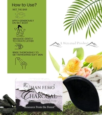 Say goodbye to pesky whiteheads and blackheads with MAN FEMO CHARCOAL SOAP! This powerhouse soap is your go-to solution for achieving that soft, smooth, and blemish-free skin you've always wanted. Packed with the magic of activated charcoal, it effectively controls acne and pimples by balancing the oils on your skin, leaving you feeling fresh and confident. Not just for your face, this versatile soap is perfect for both men and women, making it a must-have in everyone's skincare routine. Plus,it tackles dandruff too, helping you feel greate from head to toe! Treat yourself to a cleansing experience that not only purifies but also nourishes your skin. With MAN FEMO CHARCOAL SOAP, you can enjoy clearer, healthier skin every day. Grab your now and embrace a new level of cleanliness!
